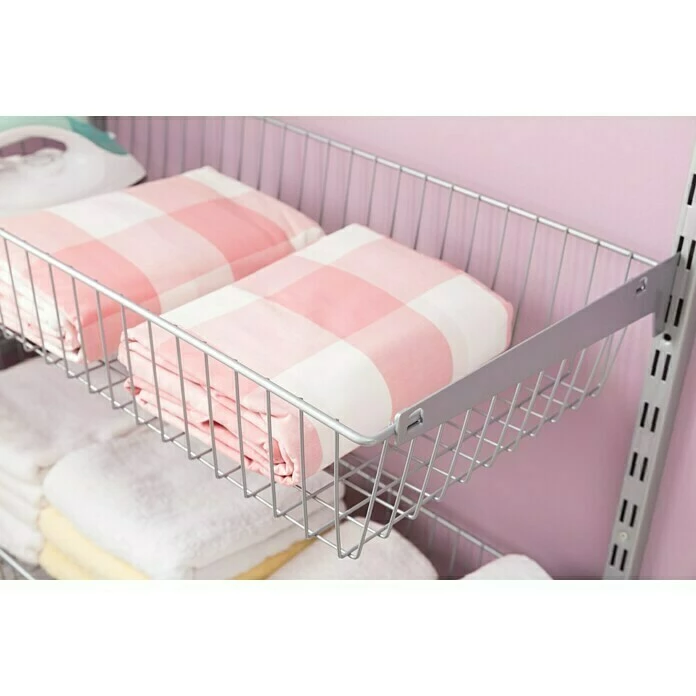 Der Drahtkorb mit Trägern von Element System eignet sich zur Kombination mit Lochschienensystemen und schafft Raum für alle Arten der Vorratshaltung. Die Montage erfolgt durch einfaches Einhängen und kann sowohl mit Schienen CLASSIC 50 als auch im CLASSIC 32 verbaut werden.