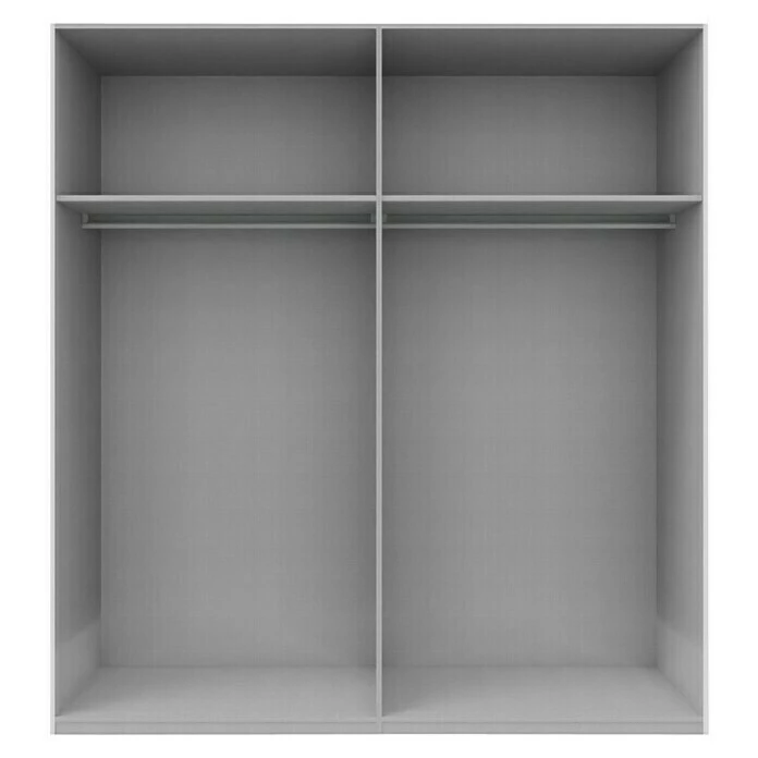 Der Kleiderschrank Swift von Express Möbel ist ein moderner Schwebetürenschrank mit einem frei zu nutzendem Innenraum. In den oberen Ablagefächern können Decken, Hüte oder Ähnliches sicher verstaut werden. Die Kleiderstangen eignen sich zur knitterfreien Aufbewahrung der Kleidungsstücke. Der aufgeteilte Innenbereich wird durch die Türen verdeckt. Die Schwebetüren sind mit einem Staubschutz ausgestattet, welcher das Verstauben des Innenbereichs verhindert. Der Swift ist aus Holzwerkstoff gefertigt und verfügt über hochwertige Metallbeschläge. Er ist wiederaufbaubar und somit umzugstauglich.