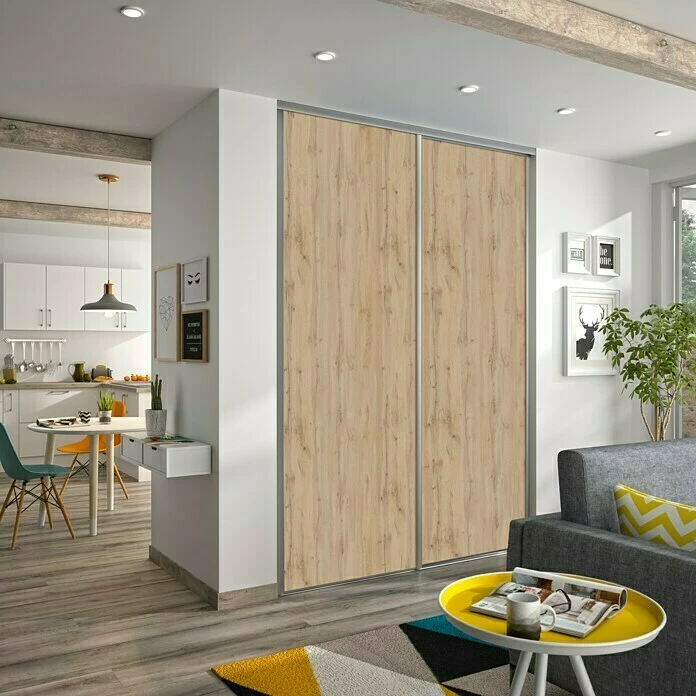 BAUHAUS Room Plaza Easy Schiebetür-Bau-Set Buche Naturwuchs/Ahorn Naturwuchs, Profilfarbe: Silber