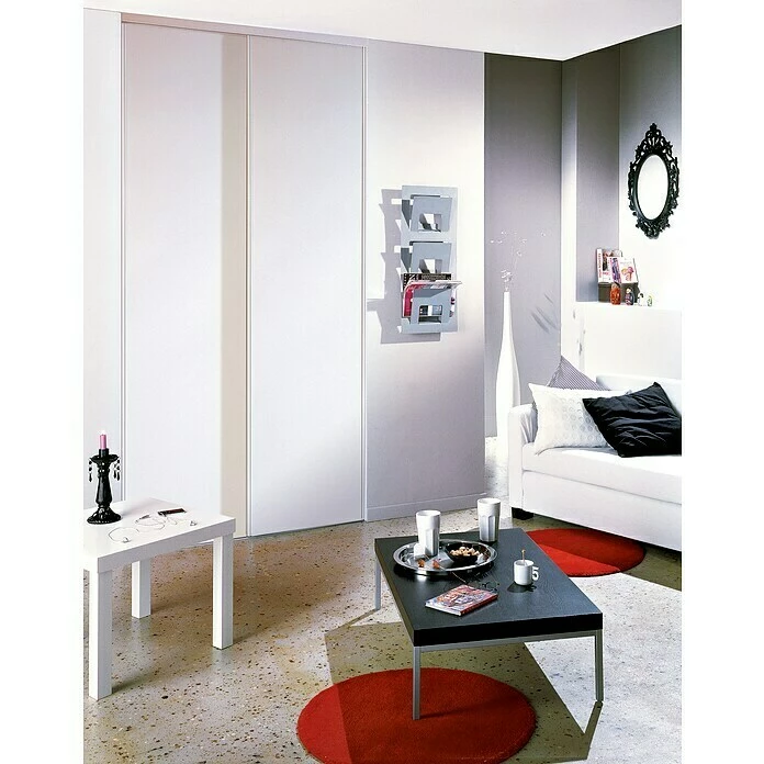 Mit dem Optimum Schiebetür-Set lassen sich Schränke, Regale und Nischen auf ansprechende Weise verkleiden. Das Set besteht aus zwei Paneelen, die in der Höhe individuell kürzbar sind. Die Schiebetürschienen sowie das seitliche Griffprofil sind weiß lackiert. Die Montage des Schiebetür-Sets ist denkbar einfach und schnell ausgeführt.